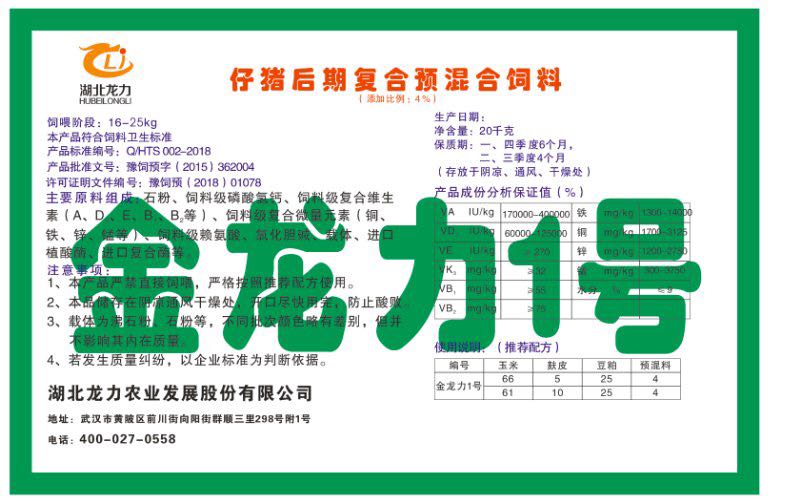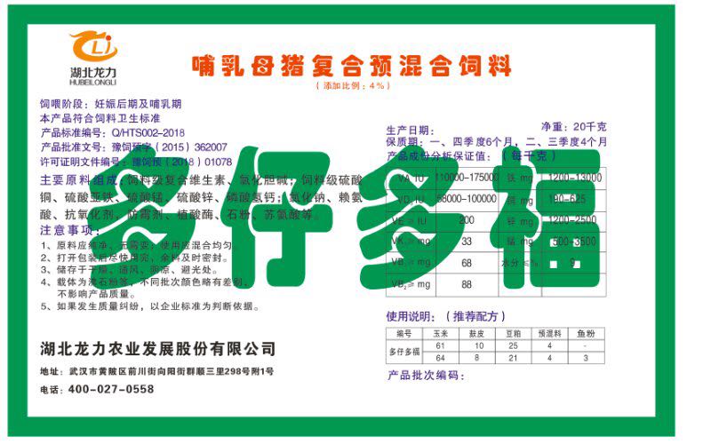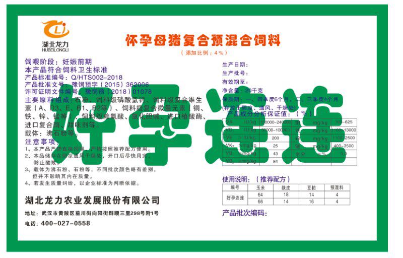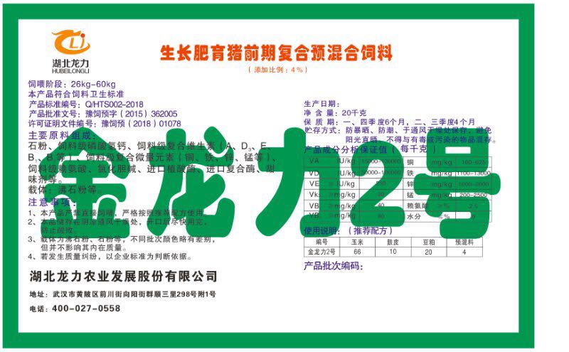 湖北龍力農業(yè)發(fā)展股份有限公司坐落于武漢市黃陂區(qū)前川街向陽街群順三里298號附1號。公司成立于2014年6月,公司自成立以來把“創(chuàng)全球最大養(yǎng)豬綜合服務”為企業(yè)愿景。致力于打造教保料品牌”作為公司發(fā)展的明確目標。公司一直致力于豬營養(yǎng)的研究和開發(fā),積極與國內外高校和科研機構合作,推廣養(yǎng)豬技術、動物營養(yǎng)新概念,向世界農牧企業(yè)學習與合作。公司采用國內先進的生產(chǎn)工藝,選擇高精度電子配料秤,高均勻度、無殘留混合機等先進設備....